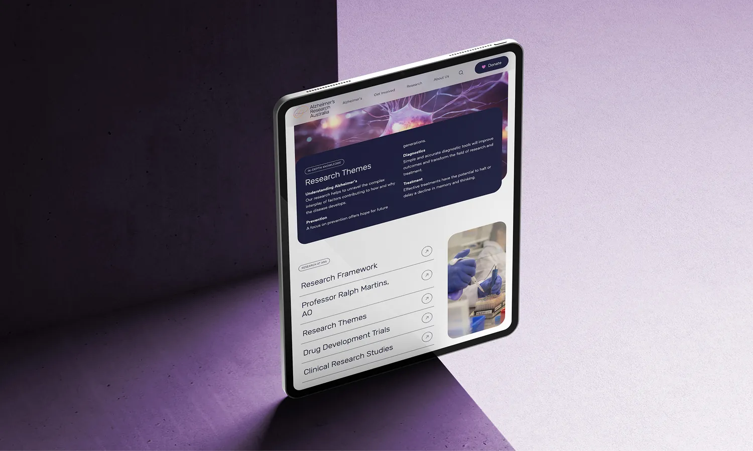 As the country’s leading research body tackling Alzheimer’s disease, Alzheimer’s Research Australia needed a website that could bridge that gap. As part of their rebrand and launch campaign, we partnered to create a website that builds trust with donors, empowers researchers, and inspires hope for the many families impacted by Alzheimer’s disease.